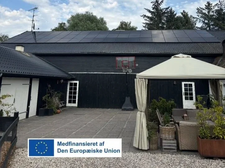 Endnu et grønt tiltag på Slangerupgaard 💚 Vores lade er blevet udsmykket med 108 solcellepaneler, som skal tilføre solenergi til gården 🔌🔋 Projektet er medfinansieret af EU 🇪🇺